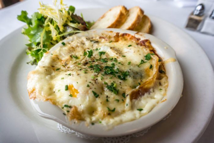 Sardine At Sardine, a modern French bistro in Madison, Wis., a comforting dish of Baked Creamed Eggs features prosciutto, spinach and Gruyère, served with a petite salad and French baguette.