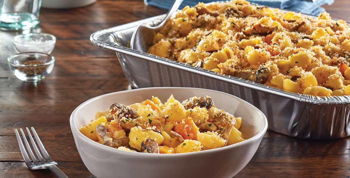 The Office Tavern & Grill, with four locations in New Jersey, offers a comforting baked item as part of each of its Meal Packages, including this Baked Harvest Mac & Cheese with pipette pasta, roasted mushrooms, butternut squash, fontina and cheddar.