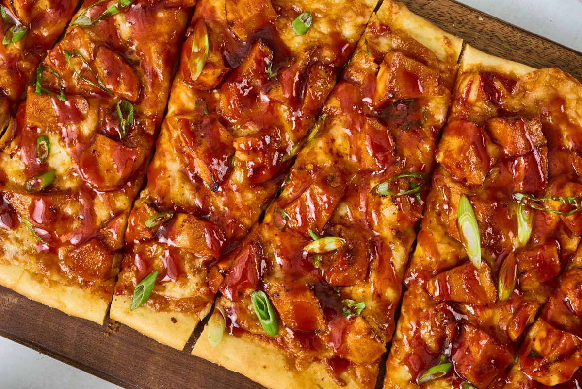 The bread may be flat, but the flavor? Anything but. This craveable flatbread delivers layers of flavor. bibigo™ Gochujang Hot & Sweet Sauce is used twice: to marinate the chicken breast pieces and bring more depth to the tomato sauce. A gooey mozzarella and a sprinkle of scallions completes the build.