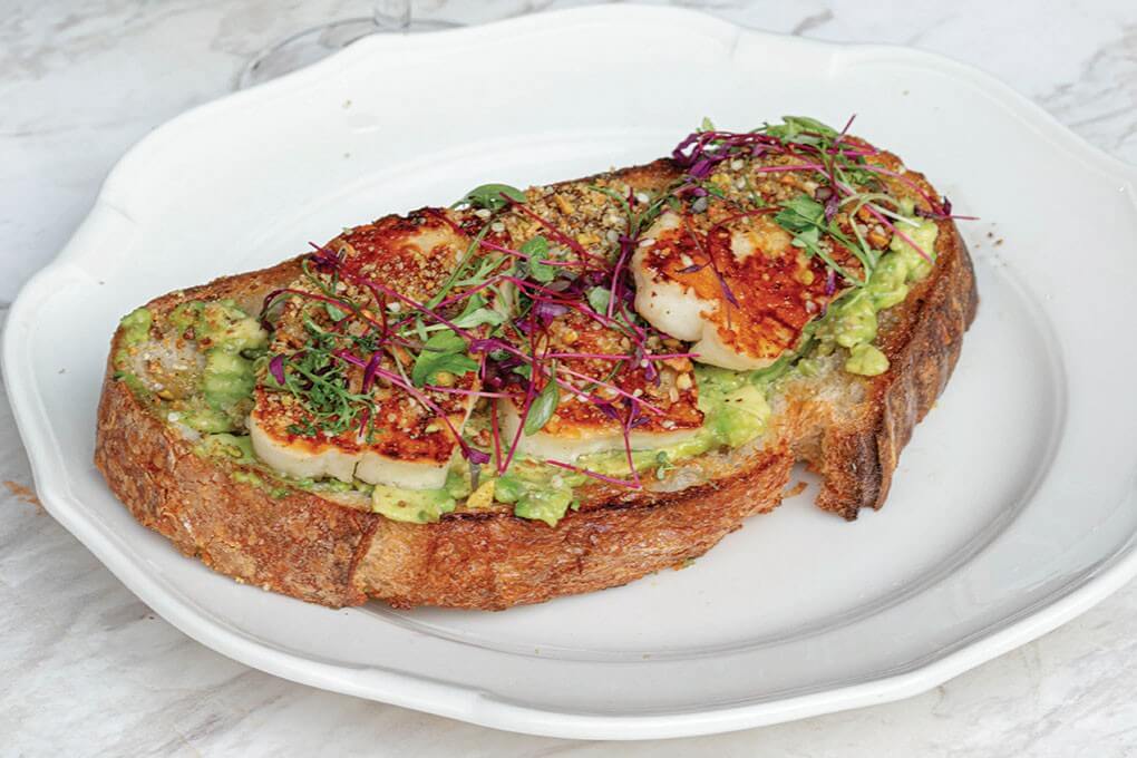 Bondi Harvest Bondi Harvest’s Grilled Sweet Halloumi Toast (above left) sees avocado, pistachio dukkah, honey and grilled halloumi on sourdough.