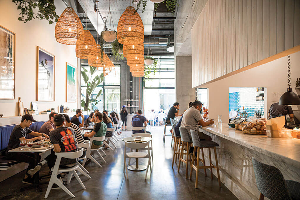 The Monfortes’ story is similar to countless other Aussies, most of whom came over in the early 2000s and, out of frustration with café options, opened their own. “That origin story of the Aussie café culture is important to understand because it stresses the commitment to quality of product and quality of ambiance,” says Kara Nielsen, principal of Kara Nielsen Food Trends. Monforte agrees: “Coffee culture is a huge part of our business. Our counter is full service, so our customers order the coffee and we bring it to them the way they want it. That surprises them at first, but they really respond to it.”