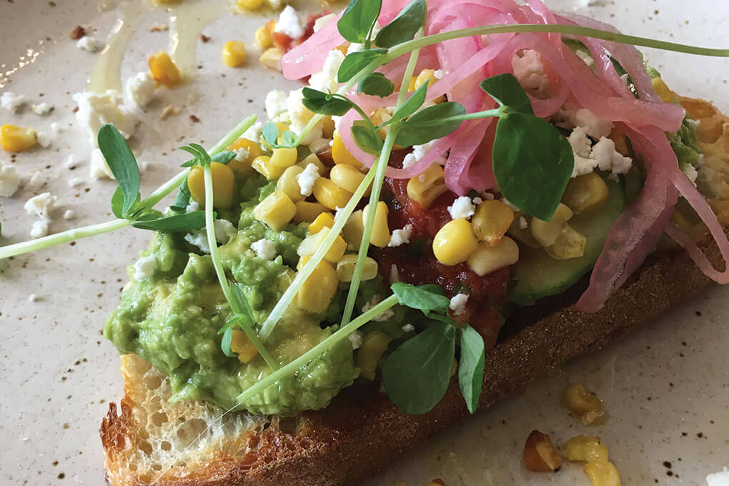 St. Kilda St. Kilda in Des Moines, Iowa, shows off a modern rendition of avocado toast, starring smashed avocado, charred corn, red onion, cucumber, feta and tomato salsa on sourdough.
