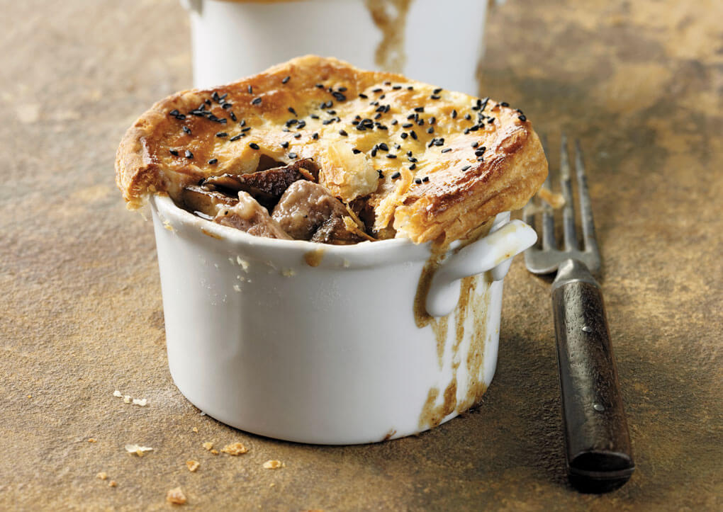 True Aussie Beef & Lamb These Lamb, Mushroom and Beer Pot Pies speak to the comfort side of the trend, with lamb shoulder braised in beer with mushrooms and spices, then crowned with puff pastry.