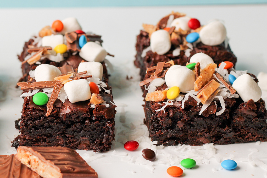 Use Ready to Bake Brownie Batter to appeal to Gen Z’s affinity for “chaotic creations.” Go crazy with inclusions that deliver different flavors, colors and textures. The example here features mini marshmallows, sweetened coconut flakes, mini M&M candies and broken Heath Bar pieces, but anything goes. See what results if you add crushed potato chips, pretzel sticks, trail mix and/or fruit pieces to push the envelope further.