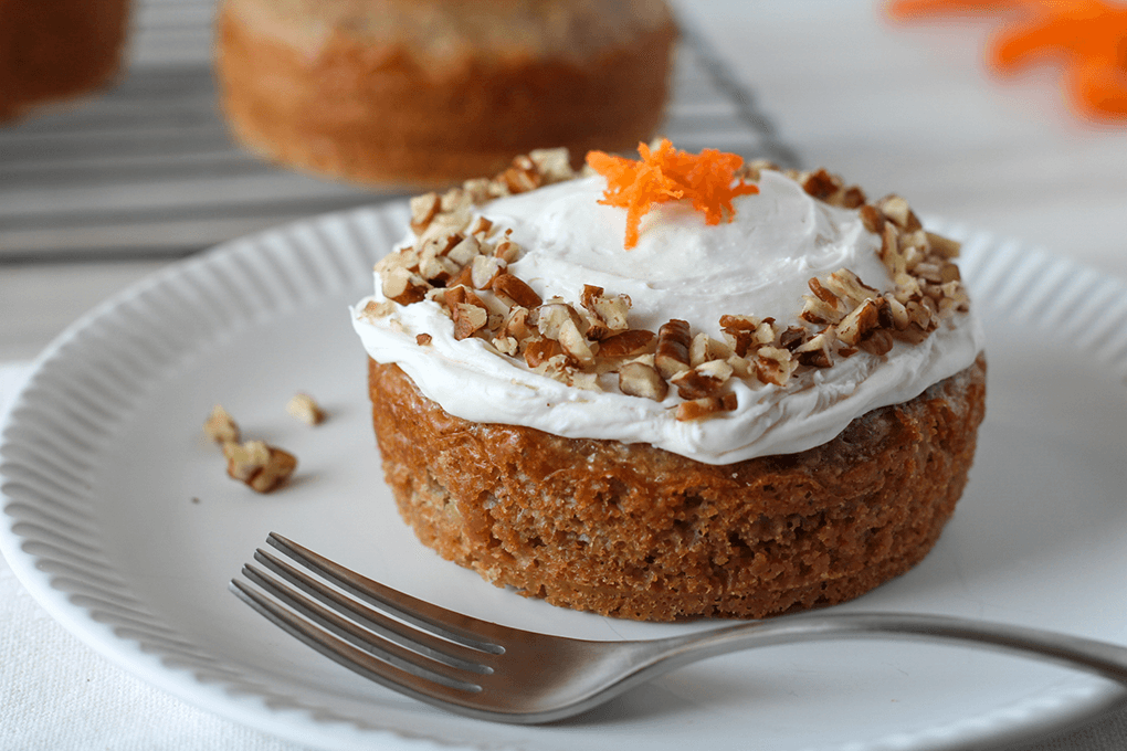 Smaller portions allow guests to indulge in dessert without guilt or the discomfort of adding to an already filling meal. There is also an artistry around bites that reflects quality and craft—and earns social media posts. Here, shredded carrots and raisins are added to Cinnamon Spice Cake/Muffin Ready to Bake Batter. Each individual portion is topped with cream cheese frosting, chopped toasted pecans and a bit of shredded carrot for a pop of color in an elegant presentation.