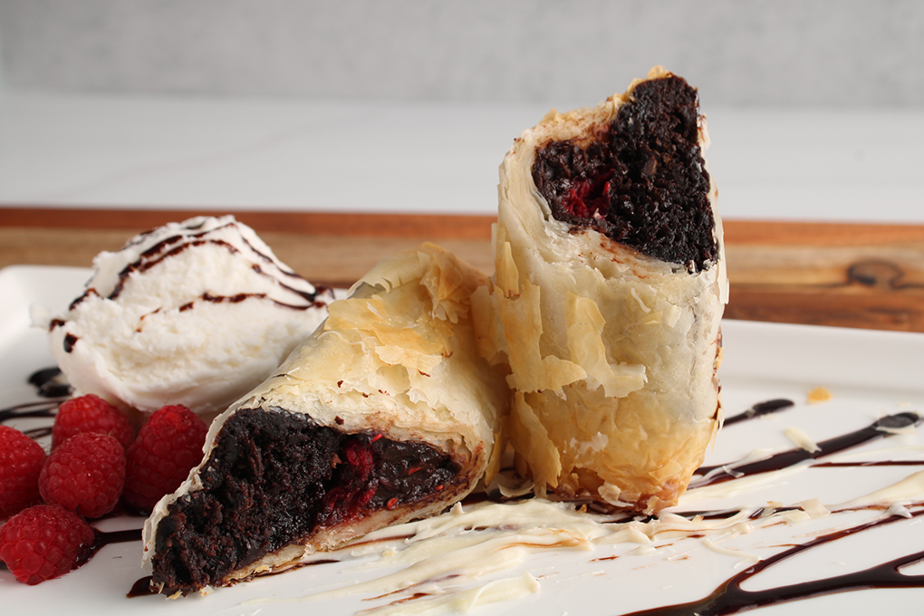 Phyllo Wrapped Raspberry “Spring Roll” Brownies