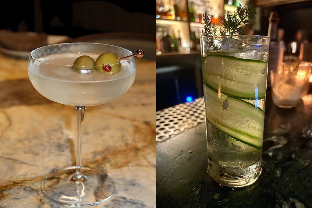 The Vodka Zozzona (left) and Garden of Eden (right) incorporate cheese in a measured way, with the former fat-washing the spirit in mozzarella and the latter tapping clarified Greek yogurt.