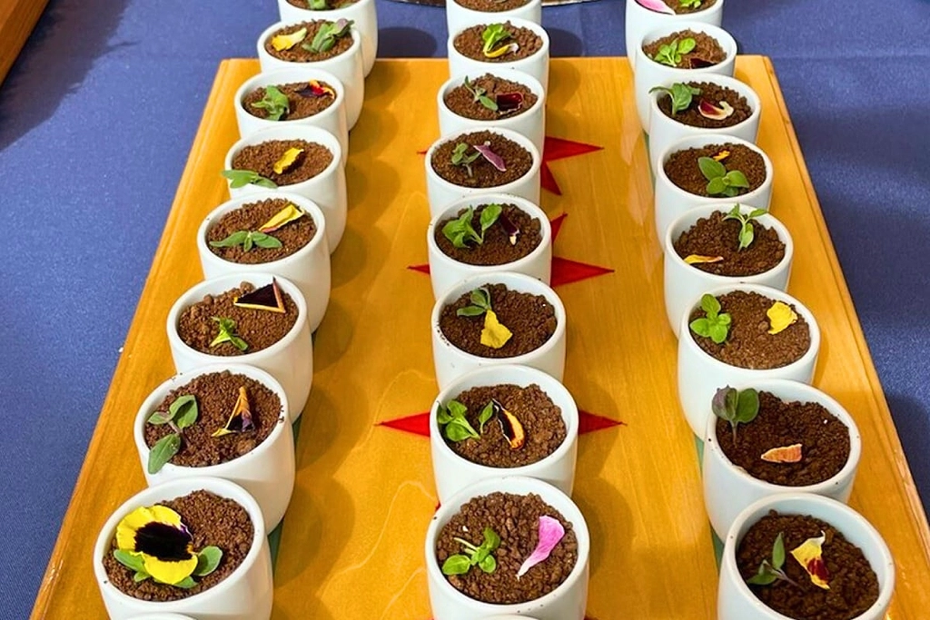 Credit: Blue Plate Catering In its award-winning crème brȗlée, Blue Plate Catering showcases the sweet side of mushrooms. The dessert incorporates lion’s mane into the custard, which is topped with “dirt” made of Oreo crumbles and porcini powder.
