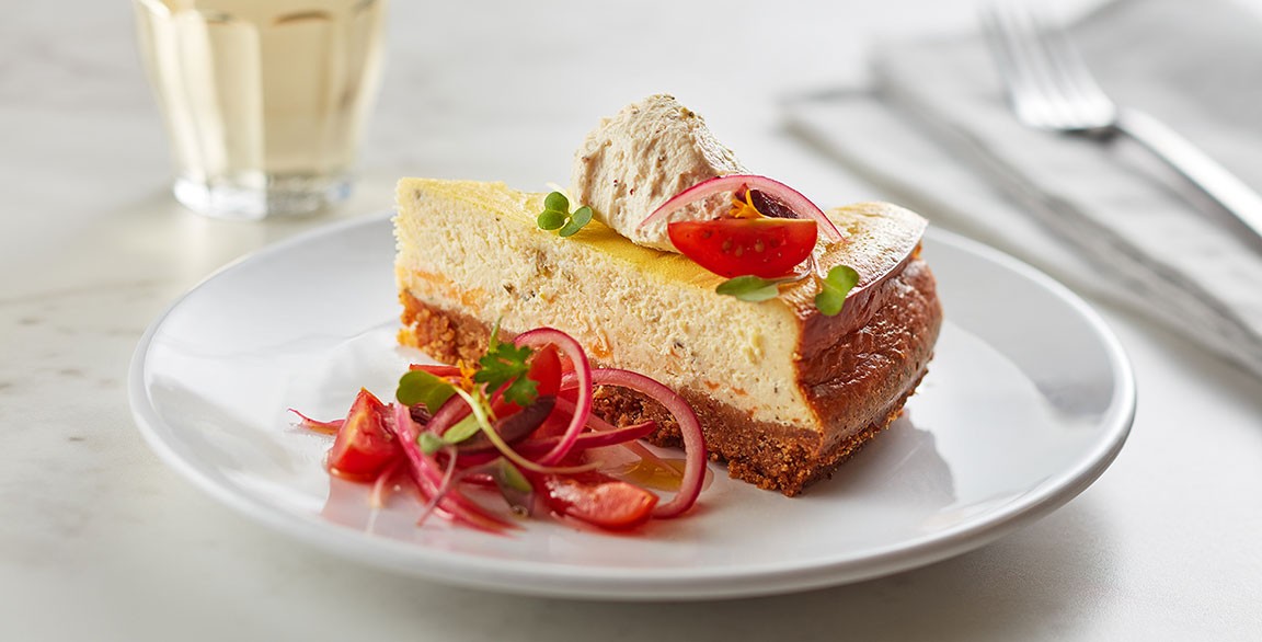 Chef James Musser uses Boursin® Garlic & Fine Herbs Cheese for his savory cheesecake, built upon a Parmesan cracker crust.