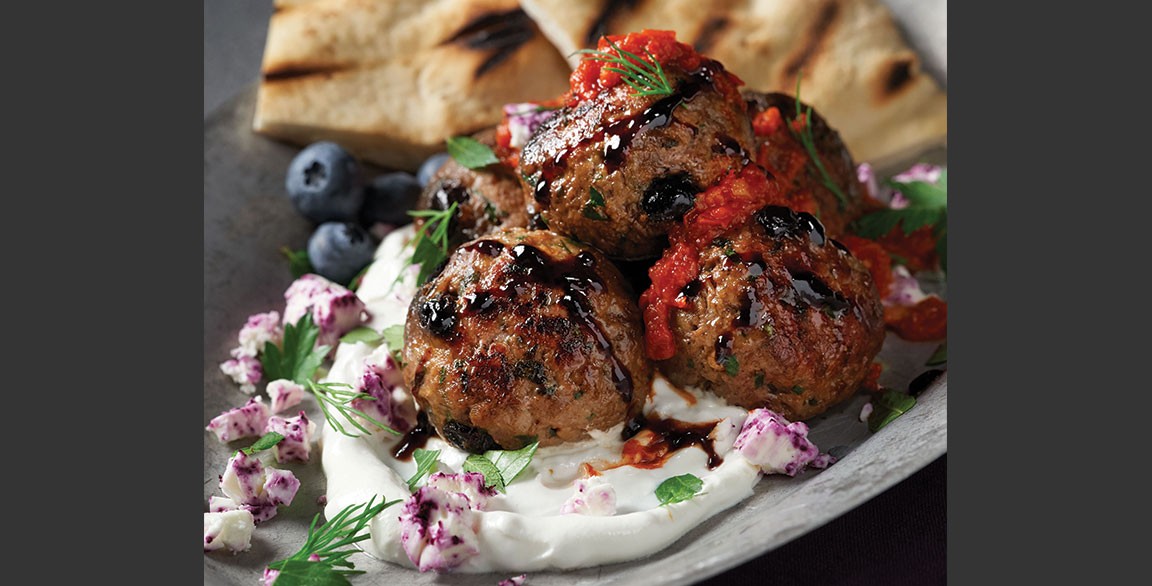 Daniel Camp says blueberries can be used as a way to soften the profile of Eastern Mediterranean condiments, popular in so many formats today, from traditional pitas to eclectic tacos, bowl builds and more. “Fresh blueberries, red onion, cucumbers, and mint ‘salsa,’ or a blueberry-yogurt sauce, can provide a cooling contrast to the aromatic spices and hot sauces typically found in wraps, pitas and other handhelds from the Eastern Med,” he says.
