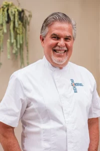 Fish, typically hamachi or snapper, is bathed in a citrus-forward leche de tigre, which is infused with aji amarillo, lauded for its distinctive balance of heat and fruitiness. Sandoval found the development of the aji amarillo-flavored leche de tigre “both exciting and challenging” as the team played with different acidities, from lime to passionfruit, “to find the right citrus backbone that would complement the chile without overpowering it.” The unexpected solution was coconut milk. “It transformed the dish, adding a velvety richness that softened the spice while enhancing the tropical notes,” he explains. The ceviche also features mango, cucumber and red onion to provide contrast in flavor and texture. “By incorporating elements like the mango, we take the traditional ceviche profile into unexpected but harmonious territory,” he says.