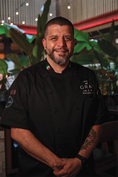 He begins by seasoning the shank with salt and pepper before giving it a deep, caramelized sear on all sides. From there, it braises for three hours in the pibil sauce. “We use whole pork shanks, making for an impressive presentation. When one of these beautifully braised shanks makes its way through the dining room, it tends to turn heads—and often leads to more orders on the spot,” says Silva. “Pork has a subtle sweetness, which pairs beautifully with the sweet and tangy notes of our pibil sauce. The creamy Cotija polenta adds a touch of savory richness with just the right amount of funk. Each element works in harmony, creating a dish that’s bold, balanced and deeply satisfying.”