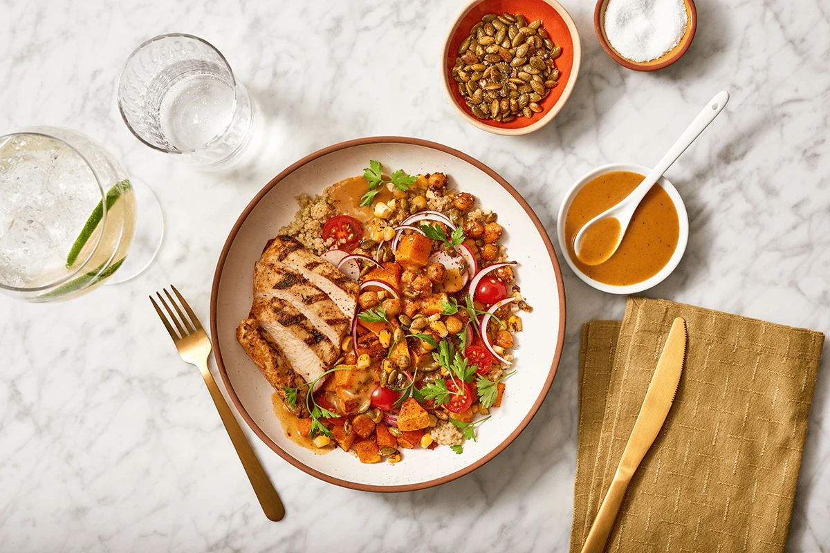 Girard’s new Pumpkin Patch Dressing is the hero in a Pumpkin Spice Chicken and Quinoa Bowl, featuring grilled chicken, fresh tomatoes, onions, roasted sweet potatoes, chickpeas and quinoa. There’s a place for innovation with classic flavors, as well. The Loaded Waffle Fries are topped with chives, bacon pieces and Girard’s Classic Chunky Bleu Cheese.