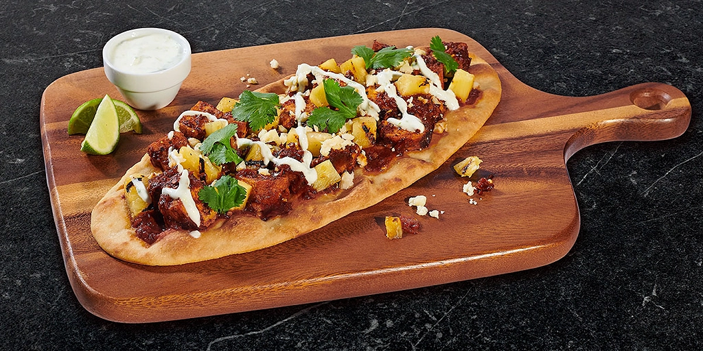 Credit: Stonefire® 13”x5” Oval Flatbread Al pastor is having a moment—or two or 20—and flatbread is great way to ride the appeal of this trend with customers.