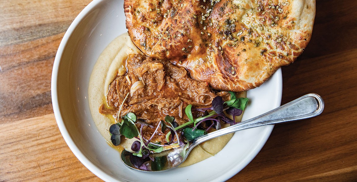 “Hummus is a great vehicle for adding flavor because, although healthy, it can be rich. Because of this, we can add bigger flavors like braised meats or smoky garlic,” says C.J. Jacobson, chef/partner. Hearty toppings like short rib and lamb ragu optimize hummus, opening it up as a platform for signature builds throughout the menu.