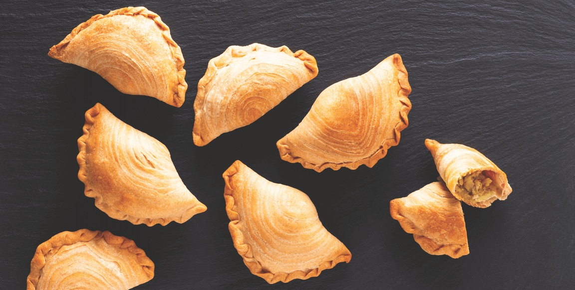 For inspiration, look to Southeast Asia’s curry puff, a deep-fried or baked pastry shell filled with a thick curry, along with other ingredients, like chicken and potatoes. At the newly opened Thai fast casual Silom Station in Sugar Land, Texas, the Curry Puff is stuffed with chicken, potatoes and curry powder and served with a cucumber sauce.