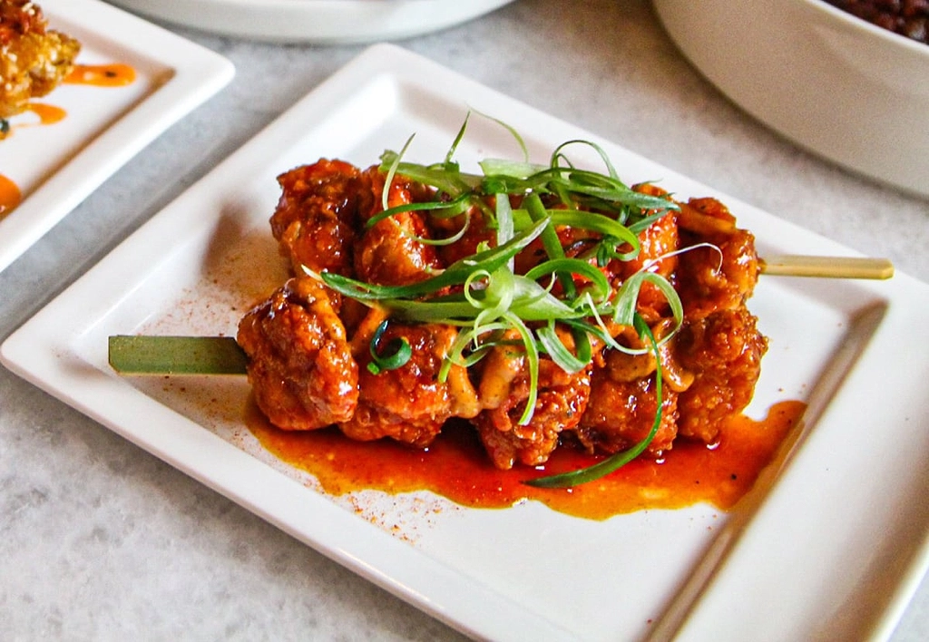Credit: Truluck’s Truluck’s has infused its bar menu with approachable yet flavor-forward options, including the Hot Honey Chicken Bites, served with a dipping sauce of pimento aïoli.