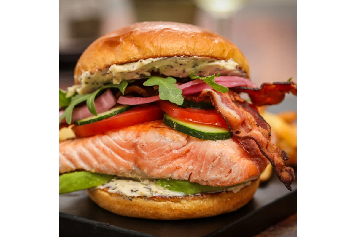 This Lemon Herb Salmon Sandwich doubles down on the citrusy-savory Lemon Garlic Herb Flavored Butter from Epicurean Butter, using it as the medium for skillet-cooking the salmon and then as a generous spread on the top and bottom buns.