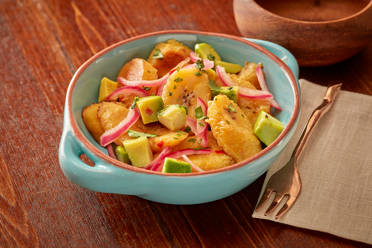 Contemporary snacks take many forms, from beverages to bowls, providing a broader spectrum of options to incorporate fruit. This vegan Pickled Plantain and Avocado Salad, featuring Dole® Chef Ready Cuts Diced Avocado, can be served as a snack or a meal.
