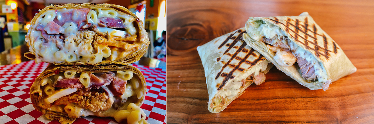 Per Bailey, the Mac Lethal is perhaps the most creative item on the menu. Named after a Kansas City rapper, the wrap only graces the menu a couple times each year. The build uses another menu item, the Mac Wrap (three-cheese andouille sausage mac and cheese in two wheat tortillas) as a starting point and then adds chicken, bacon, egg, brisket, tortilla chips and a housemade lemon-garlic aïoli. “The wrap is a feast,” Bailey declares. “The combination of ingredients definitely stands out, but a big part of our innovation in wraps is to take them and do something different in a way that applies additional meaning to it.”