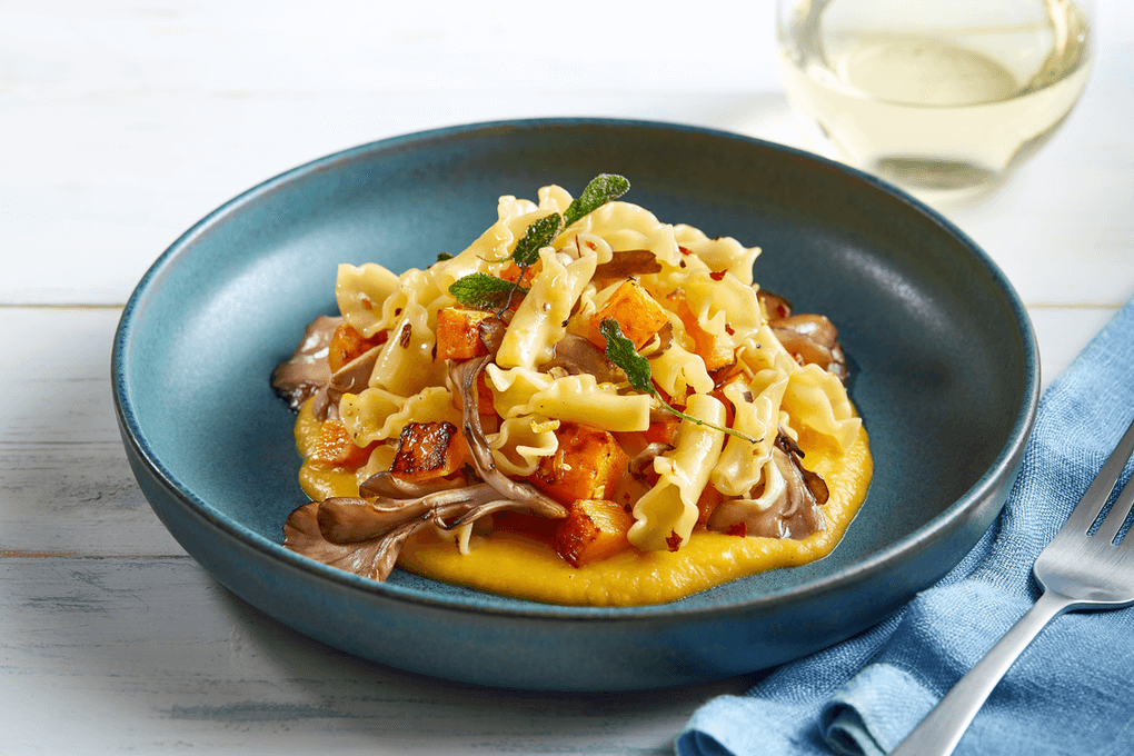 Campanelle Pasta with Butternut Squash, Maitake Mushrooms, Sage and Chiles