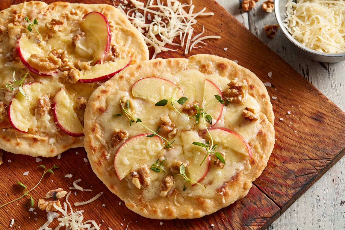 Hallowell may not be in active pursuit of replicating this particular flavor remembrance, but it represents a host of ingrained experiences that drive so many chefs to the culinary arts, where they seek to reconstruct someone else’s cherished memory. Flavor drives the story, and Hallowell has created three flavor-forward dishes for Kitchen Collaborative that are sure to be a part of a future guest’s reminiscences: Latin-Roasted Pork Flatbreads with Rum-Soaked Pineapple and Black Garlic Butter; Vegan Cauliflower and Cucumber Aguachile; and Fontina, Apple and Walnut Piadina with Thyme.