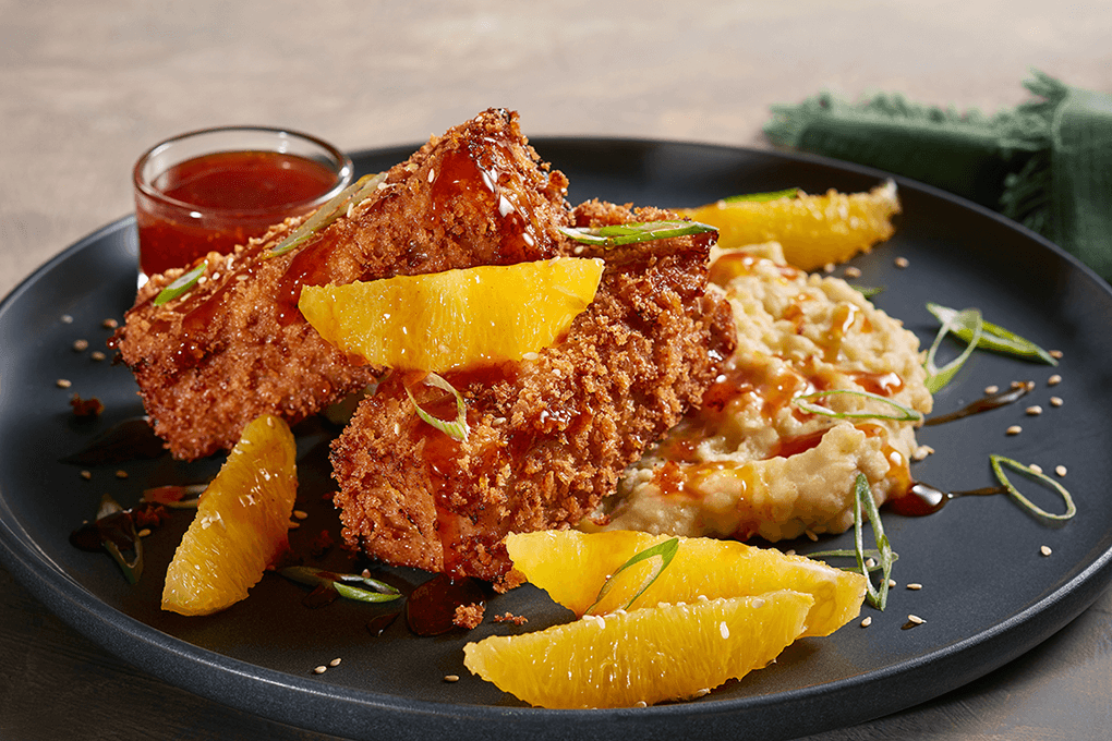 Panko-Coated Orange Chicken Meatloaf with Roasted Sesame Mashed Potatoes