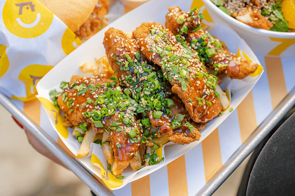 San Diego-based The Crack Shack carves out a competitive edge with its chef-driven menu. Instead of tenders made out of chicken breast, it features Chicken Oysters, pickle-brined and cornmeal-dusted, then served with a rémoulade sauce. And Starbird, a super-premium, quick-serve chicken concept in Northern California, demonstrates the balance between familiar and adventure in its flavor-forward-yet-approachable chicken tender LTOs—aimed squarely at Gen Z. Its latest special is the Orange Chicken Tenders, crispy orange-glazed tenders topped with cilantro, green onion and toasted sesame seeds, and served with both a Creamy Sesame Vinaigrette and Orange Glaze Sauce. Other winning combinations include the recent Sweet Thai Glazed, with an Asian herb mix, crispy shallots, sesame seeds and Spicy Herb Aïoli; and the Nashville Hot, with oil-and-spice dill pickles and Greek Yogurt Ranch.