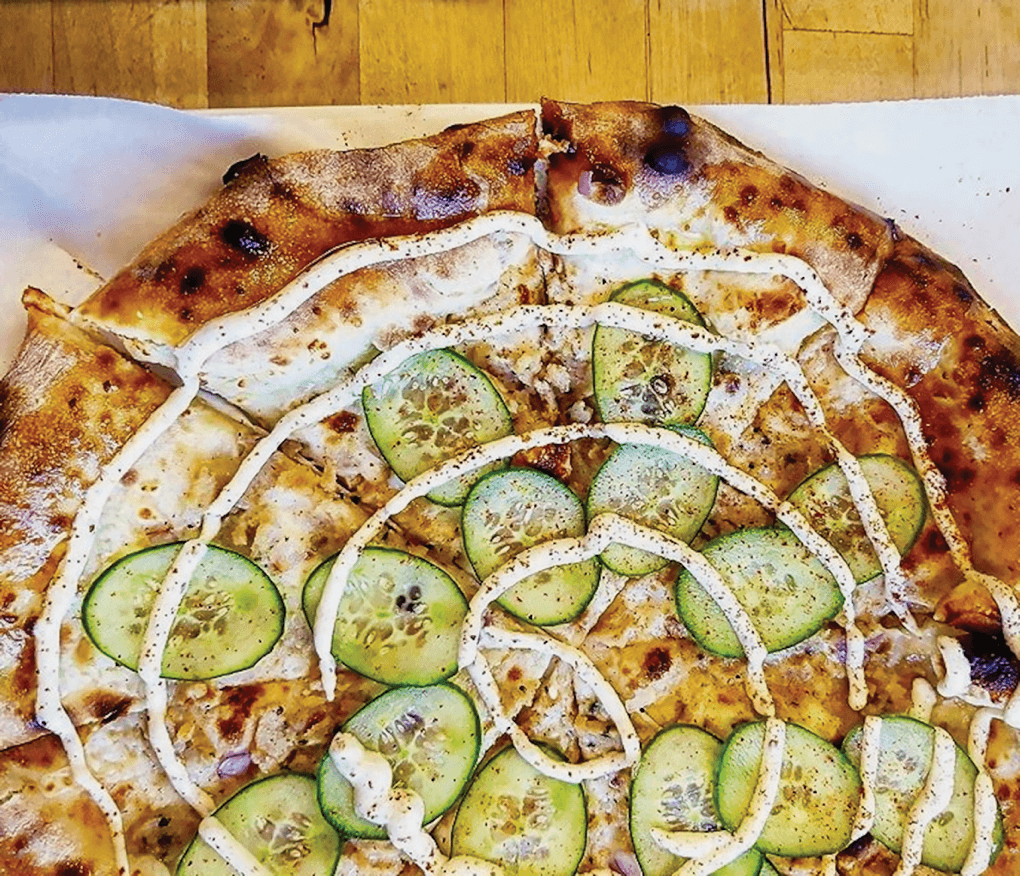 Photo Credit: 786 Degrees 786 Degrees menus globally inspired pies, like this Istanbul Pizza with grilled onions, cucumbers and yogurt sauce.