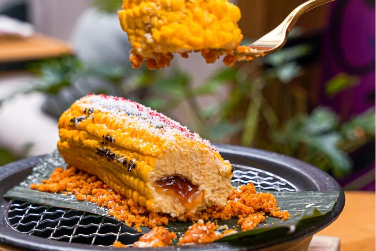 A feast for the eyes and the taste buds, the aptly named Corn at Chica features corn cheesecake flan filled with strawberry sauce for a sweet-savory two-punch.
