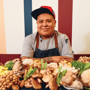 “The flavor experience of this dish is a harmonious symphony of rich umami notes from the trumpet mushroom ragu, complemented by the subtle sweetness of beet-infused pasta dough,” says Pajarito. “The scallions and garlic in the ragu provide aromatic complexity, while the almond ‘ricotta’ adds creamy indulgence. The broccoli-spinach sauce lends brightness that balances the richness of the dish. Overall, the combination of flavors creates a memorable culinary journey, offering familiar yet extraordinary tastes that linger on the palate.”