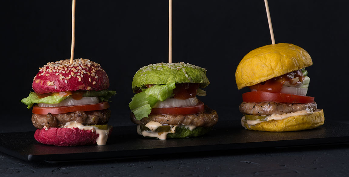 A trio of mini burgers, each offering a unique flavor profile, gives guests a fun tasting of a restaurant’s offerings.