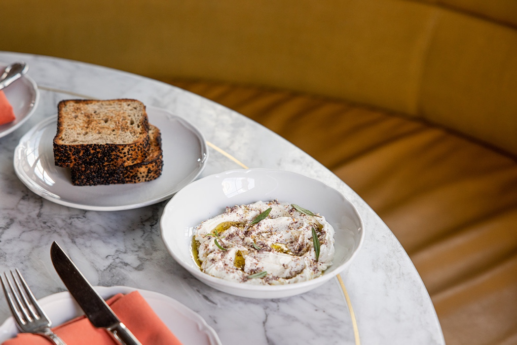 Photo Credit: Ash Randall At Bavel, the Farm Cheese, with borage za’atar, savory and olive oil, stands out with a signature housemade black sesame buckwheat toast.