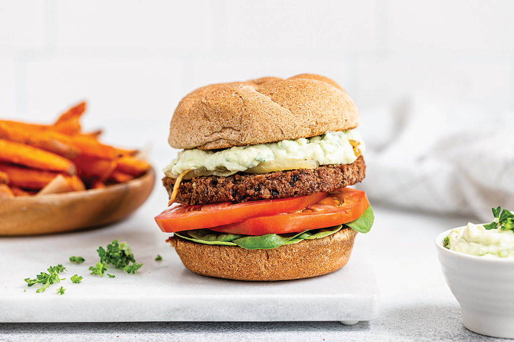 This Epic Veggie Burger with Dairy-Free Boursin & Avocado Cheese Spread answers the call for plant-based menu items while keeping indulgence and satiety in the crosshairs. For an ultra- creamy condiment, Boursin is combined with avocado, cilantro, lime and salt, then spread atop the veggie burger. Caramelized onions, a thick-cut tomato slice and butter lettuce finish the build.