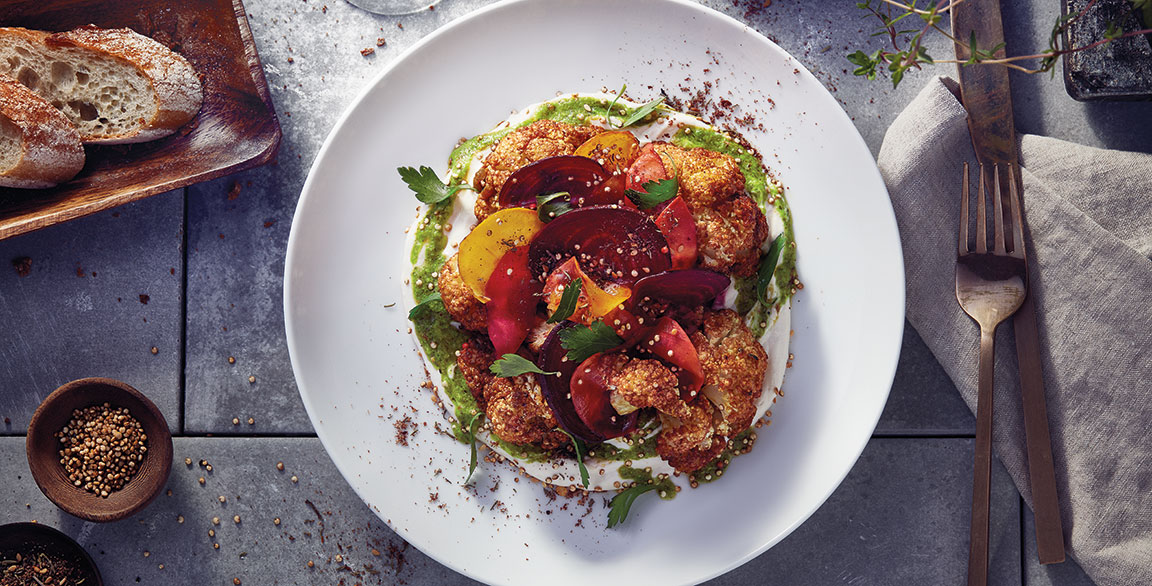 For cauliflower to become a menu champion, flavor must move sharply into focus. Chef Leyla Wheelhouse showcases the power of that strategy in her Za’atar Roasted Cauliflower with s’chug, garlic labneh and quick-pickled beets, which took first place in Minor’s® Flavor Expedition Recipe Contest.