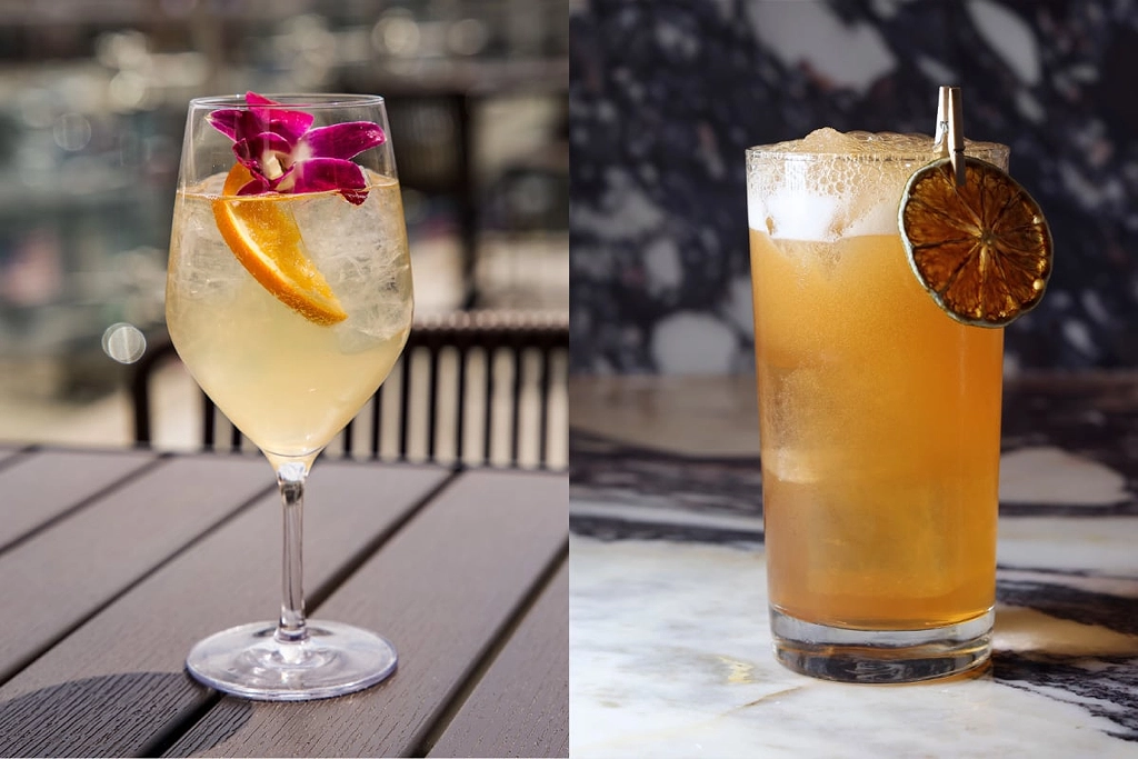 Credit: Eastern Standard Rockey’s Spritz—Eastern Standard’s riff on the classic Venetian Spritz—brings features notes of tea and fruit (left), while the Monte Paloma substitutes tequila in favor of amaro (right).