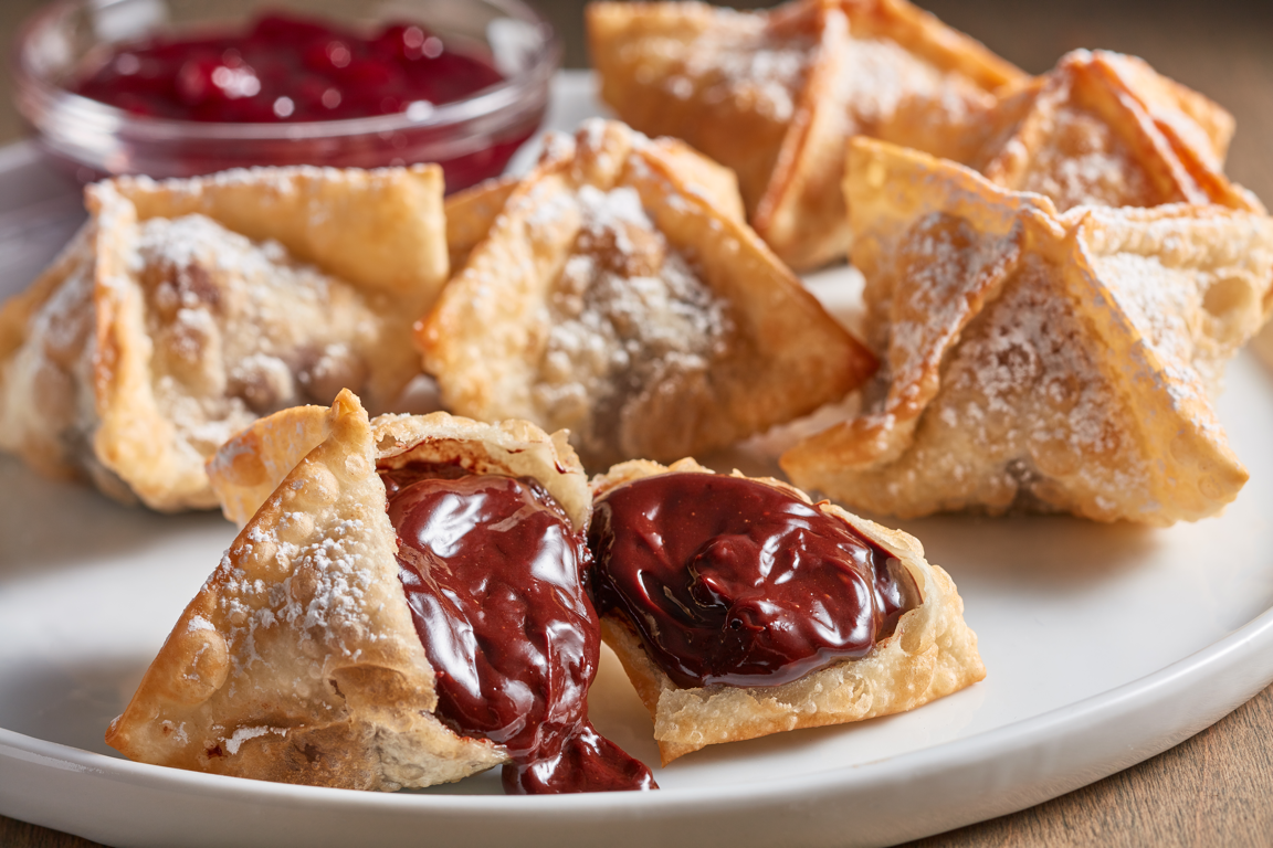 Ghirardelli Chocolate Rangoons with Lingonberry Sauce