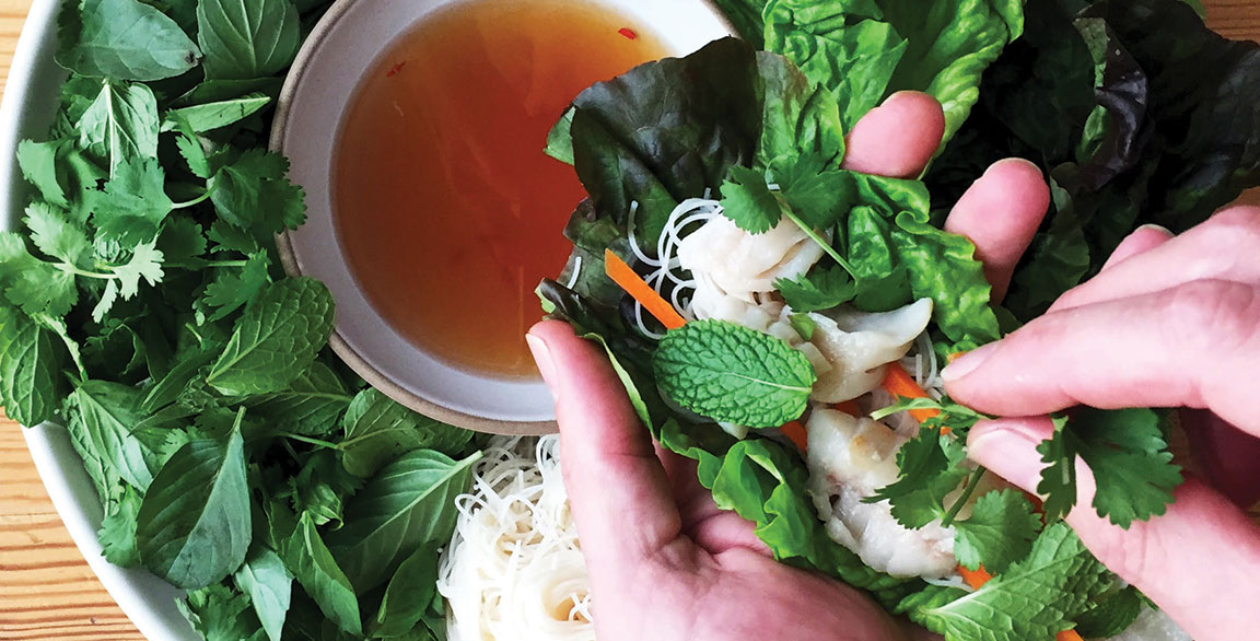 Reflecting her go-to flavors for seafood builds, Sarah Forman’s Vietnamese-Style Snapper Lettuce Noodle Wraps are a collaboration with her partner, chef Nathan Lyon.