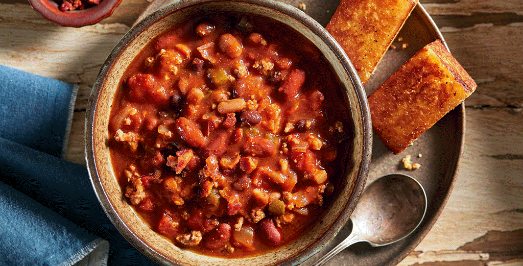 I feel that chili is always better on day two or three. Make a large batch, chill and refrigerate. Heat up one gallon at a time and enjoy; serve with some Saltines.