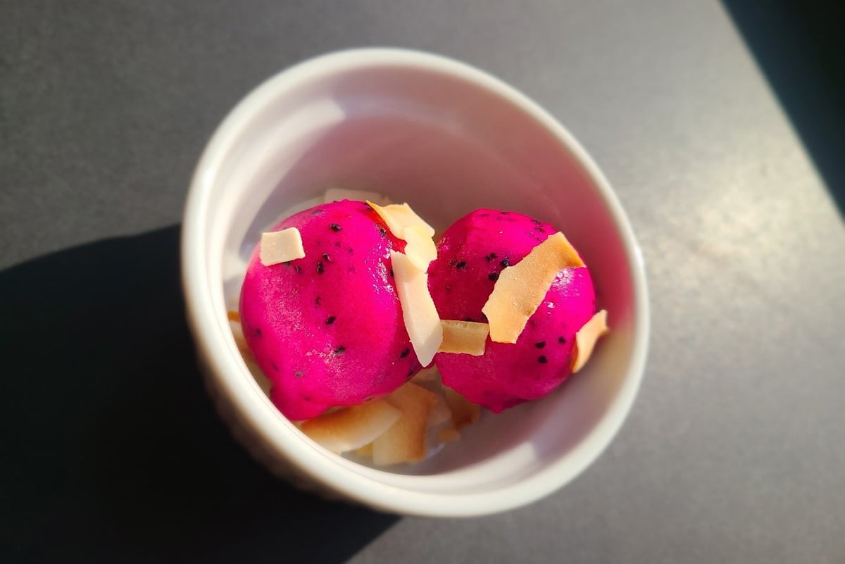 Dragon fruit’s explosive growth on modern menus makes easy-to-execute items like this Dragon Fruit Sorbet a great option for small-space operations.