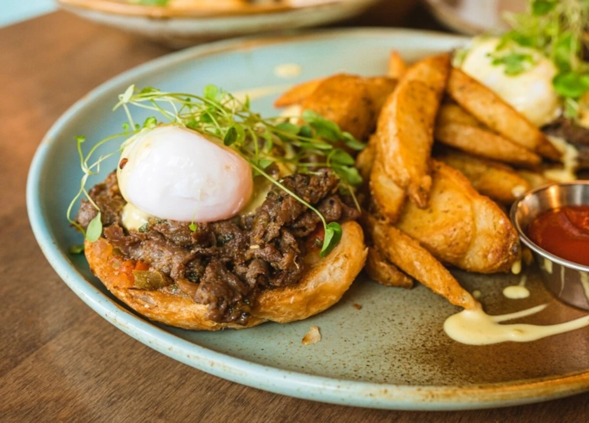 Credit: OEB Breakfast Co. OEB Breakfast Co.’s Korean Bulgogi Benny taps the trending cuisine, with thinly shaved ribeye and peperonata atop a split croissant and finished with a brown butter hollandaise and micro greens.