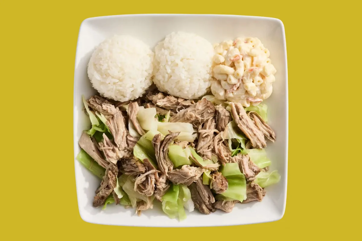 The Kalua Pig plate lunch at L&L Hawaiian Barbecue showcases the islands’ affinity for grilled meats and meals that combine multiple dishes.