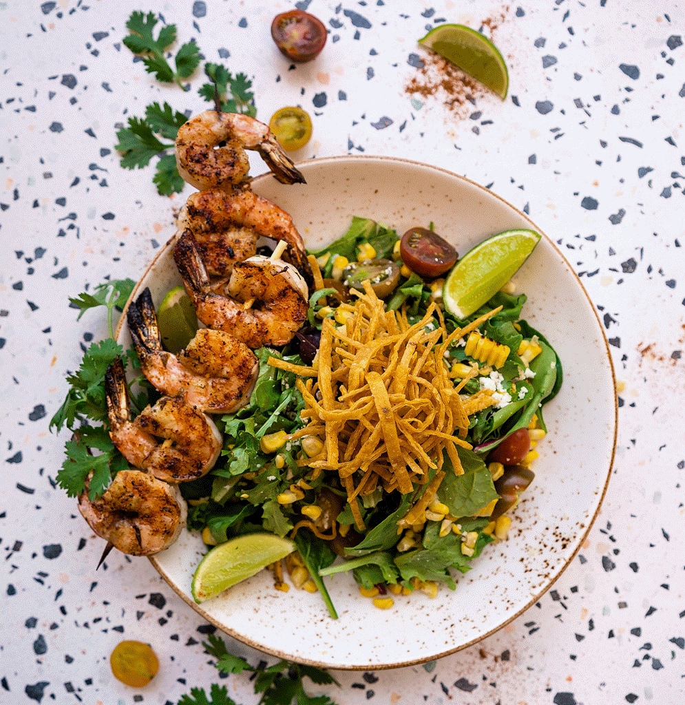 The Cilantro Lime Salad at Nordstrom Restaurants features blue wild Mexican shrimp, sourced from a supplier who follows responsible environmental practices and offers a meaningful