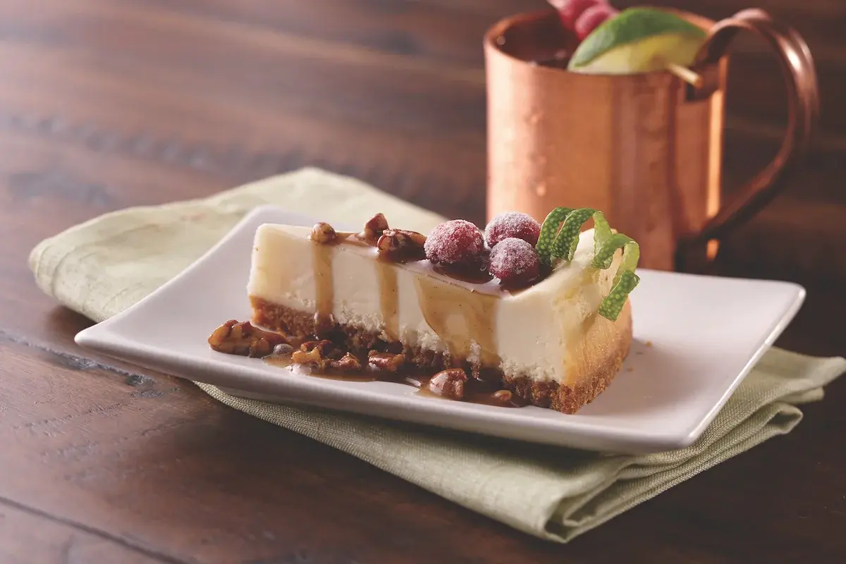 Take desserts next-level by incorporating a boozy kick to the finishing sauce. Here, a syrup featuring the signature flavors of the popular Moscow Mule—spicy ginger, tangy citrus and clean, fresh vodka—invigorate a classic cheesecake.
