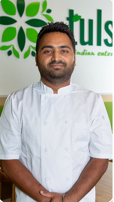 Tulsi’s eight curry dishes range from a spicy and tangy Amritsari Chole with garbanzo beans, garlic and whole spice flavors, to a saucy plant-based “chicken” curry doused in a creamy masala gravy to Vegetable Cashew Korma, featuring mixed vegetables cooked in a rich cashew paste with herbs and spices. Diners also select from four variations of rice dishes, four daal soups, naan or roti, and six sweet desserts. “This representation of India on a plate gives our customers a taste of authenticity and satisfaction as it represents our diverse menu overall,” says Singh.