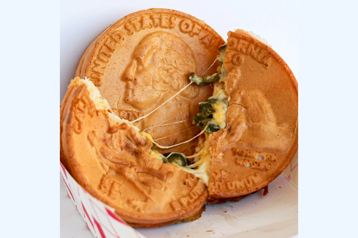 Credit: Boba Sound KTown Korean coin bread gets an American twist at Boba Sound KTown, with a quarter coin design and ingredient plus-ones like jalapeños, corn and even pizza sauce.