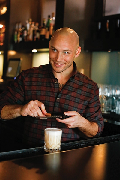 At Brodeto, Raleigh’s love letter to Adriatic cuisine, the wood-fired grill isn’t just for the kitchen. It touches everything, including the cocktails. The Adriatica, created by Jordan Joseph, beverage director of Brodeto’s parent company Crawford Hospitality, brings grilled complexity to the glass. Built on a base of Uncle Val’s gin, it layers the citrusy perfume of fire-charred Meyer lemons with fresh basil and a subtle drizzle of Sicilian olive oil. “This drink is all about simplicity and technique,” says Joseph. “It’s a great example of what ‘less is more’ is all about.”