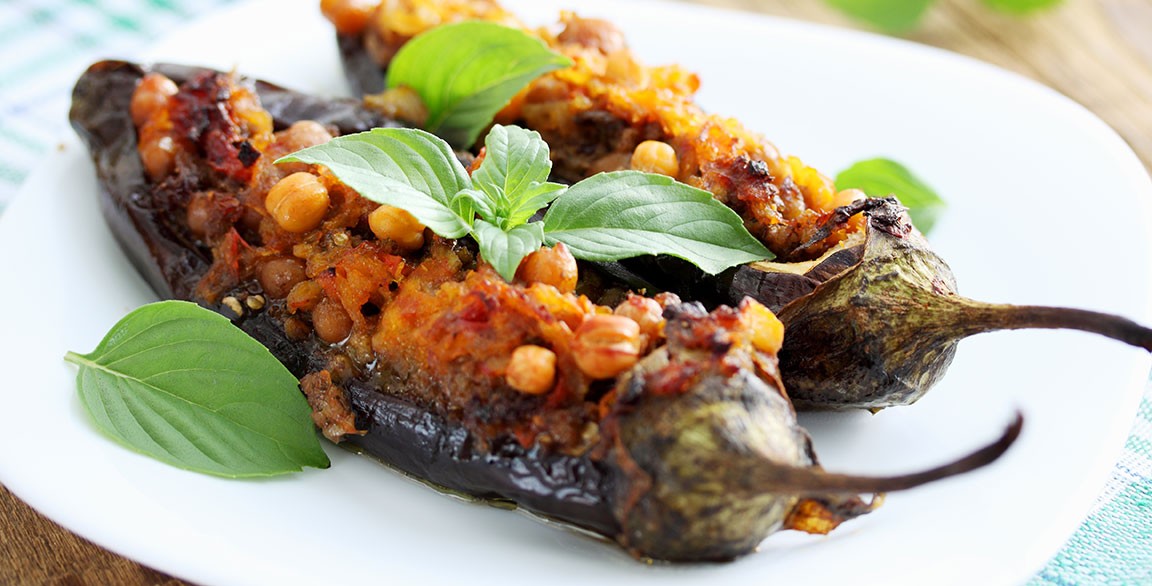 The plant-forward movement gets the Balkan treatment in this craveable baked eggplant dish, filled with flavor-rich pork, chickpeas and root vegetables.