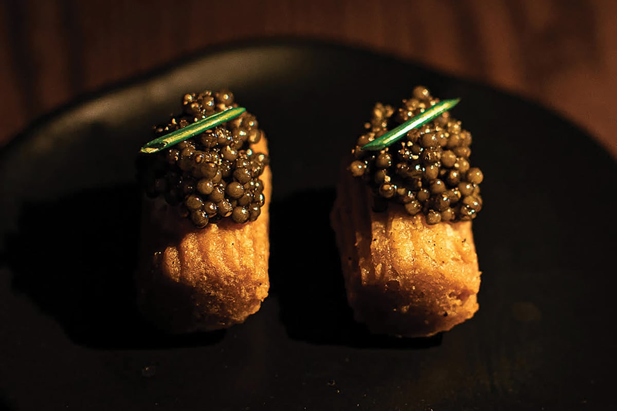 Credit: Hsing Chen Savory Golden Caviar Churros are filled with crème fraîche and topped with Ossetra caviar at Chicago’s Asador Bastian.