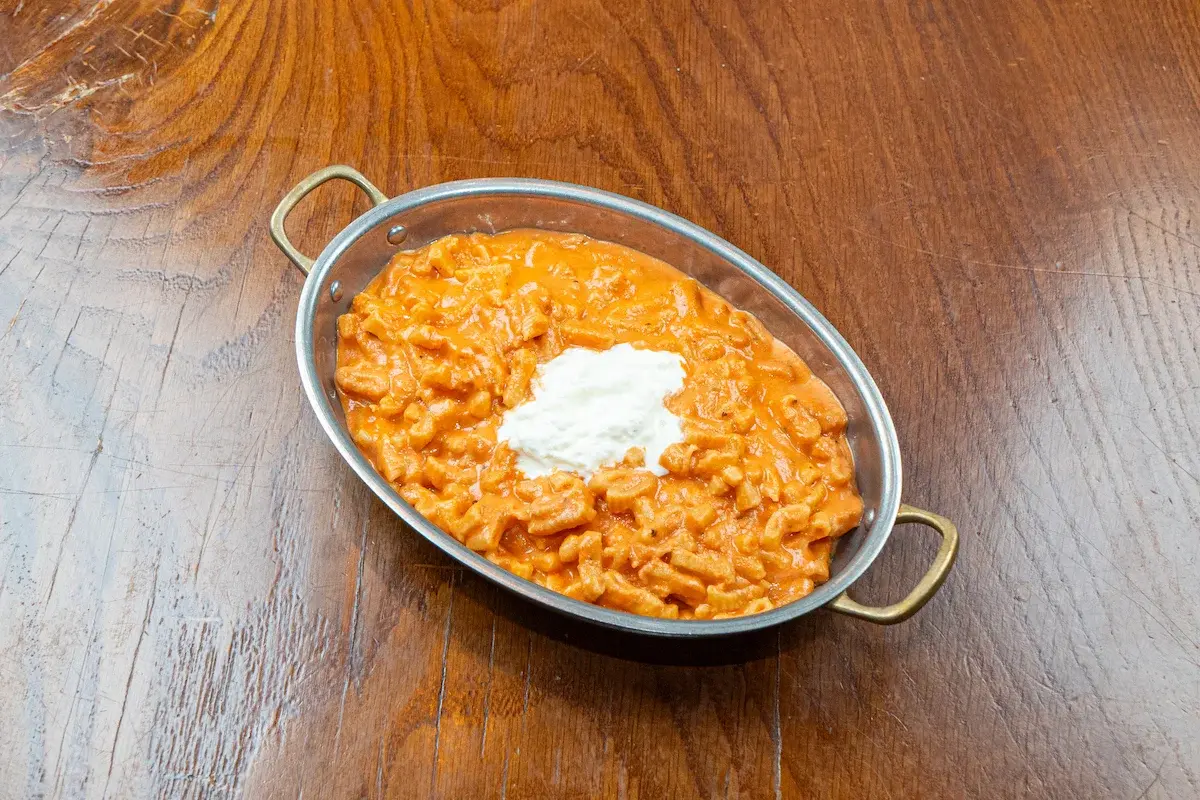 Fontana di Vino’s elevated take on Spaghetti O’s features scratchmade ingredients and a luscious dollop of stracciatella.